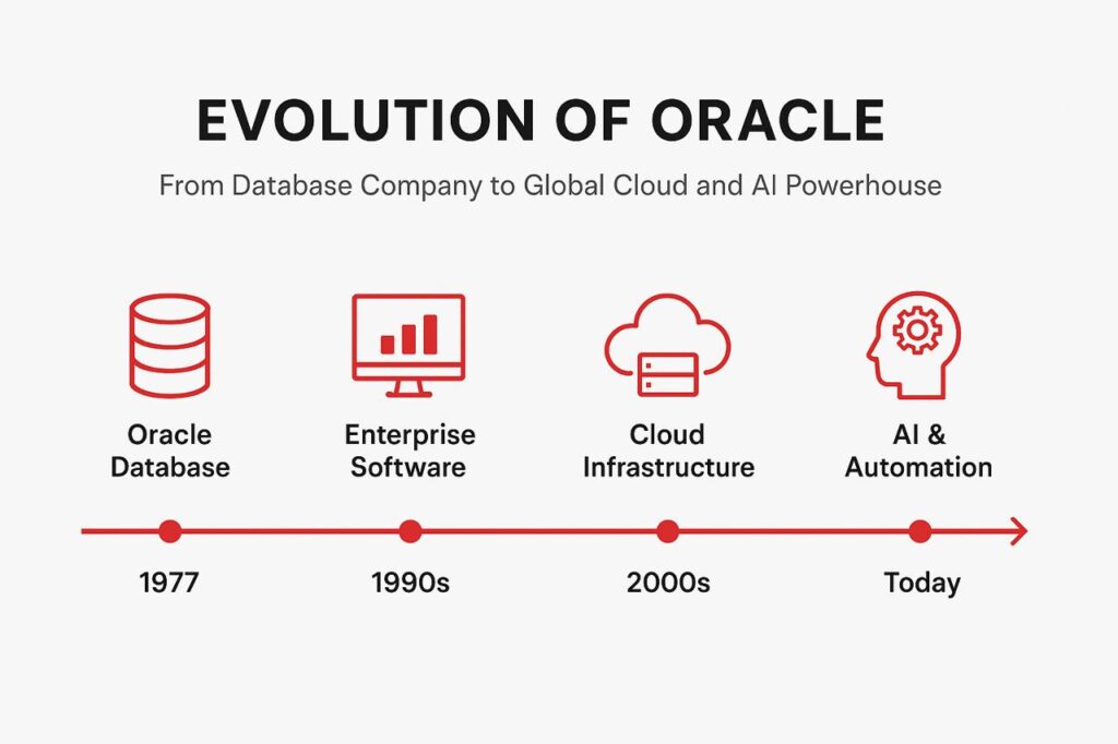 When most people hear “Oracle,” they think of databases and they wouldn’t be wrong. But that’s only a fraction of what Oracle Corporation represents today. Now, what does Oracle really do? Over the past four decades, Oracle has evolved from a database software provider into one of the world’s largest enterprise technology companies offering cloud infrastructure, business applications, cybersecurity solutions, and AI-driven analytics to millions of customers across the globe.